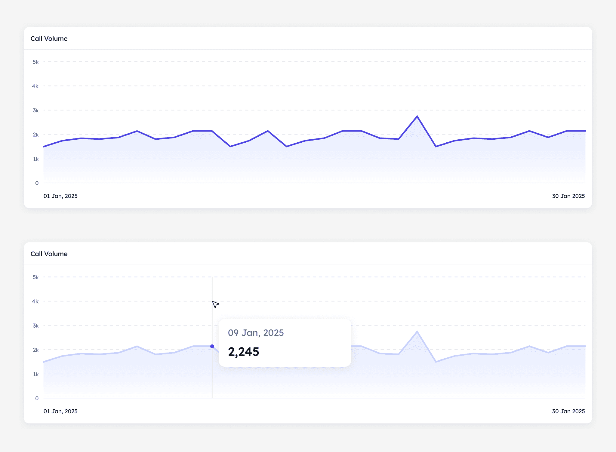 This was one of the biggest asks from our client teams because understanding call volume patterns would help them identify call spikes for a time period.